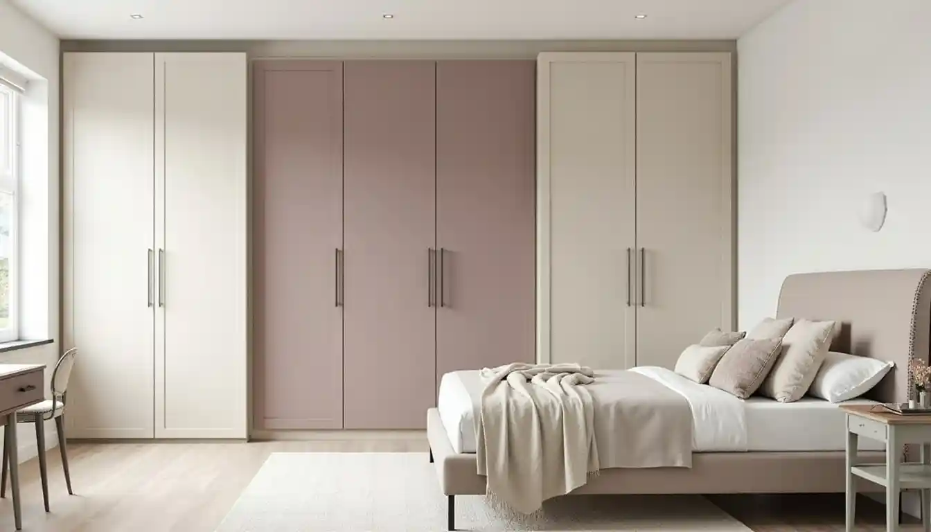 If your walls are light and neutral, you have freedom. A dark, bold wardrobe can become a beautiful focal point. If your walls are already bold or patterned, choose a softer wardrobe colour. White, beige, or light grey will complement without clashing.